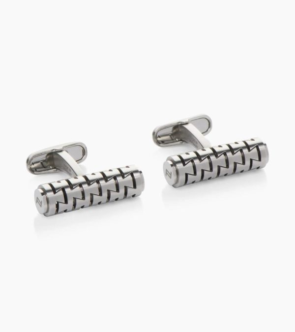 Designer stainless steel cufflinks. Exclusive design inspired by the automotive heritage of Porsche. Moveable laserflex cylinder element. Made in Germany.