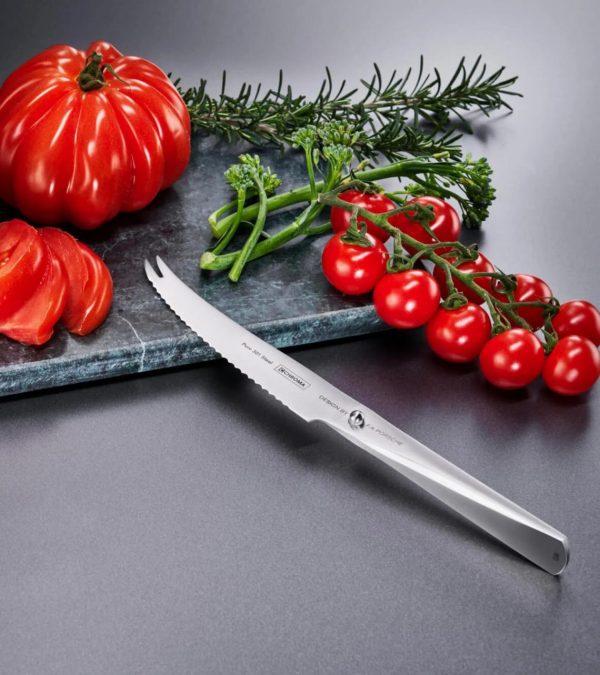 The tomato/cheese knife with the serrated blade is also good for citrus andsimilar, and for bread rolls, 12cm.