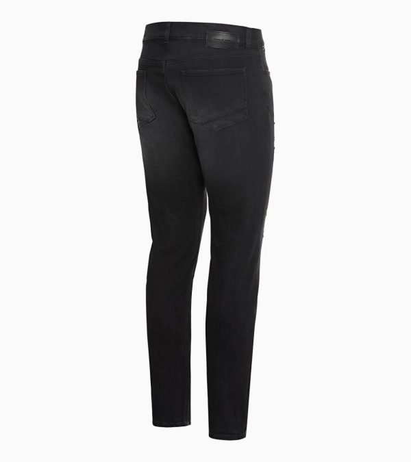 Black skinny fit 5-pocket jeans for men in modern 7/8 length. Elastic ecowash denim with light wear effect. Exclusive Porsche Design details.