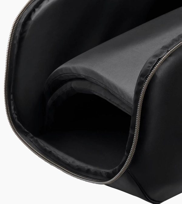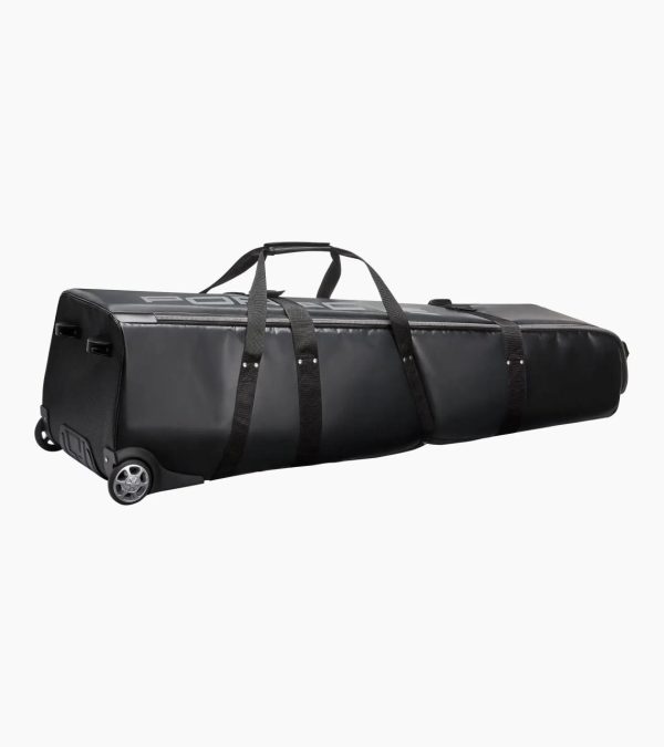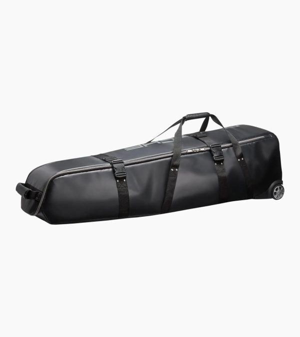 Water-repellent Porsche golf travel bag for bags with a top diameter up to 11 inches. With padding to protect clubs and ball-bearing skate wheels for easy transport.This golf travel bag is made of coated, water-repellent fabric and combines storage space with security when travelling. Its heavily padded side walls and the inner foam shell provide optimal protection for the clubheads. The bag is also easy to transport with wheels. The internal storage pockets are a practical detail. There is a ‘PORSCHE’ silicone print on the front.